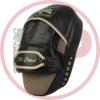 Лапы гнутые эргономические используются на тренировках для отработки спортсменом с тренером акцентированных ударов. Для развития сильного и точного удара в момент соприкосновения перчатки с целью тренер создает мышечное напряжение в руке, на которую надела лапа. Удобный хват, нескользящая накладка под ладонь и изогнутая форма, которая повторяет изгиб ладони, позволяет снизить нагрузку и свести к минимуму воздействие на руки тренера. Лапы изготовлены из прочной, износостойкой искусственной кожи, способной выдерживать большие нагрузки. Дополнительно все детали продублированы нетканым материалом высокой плотности. Это придаёт конструкции ещё большую прочность.