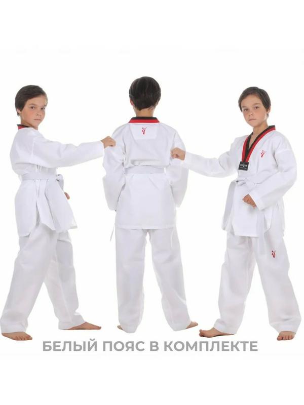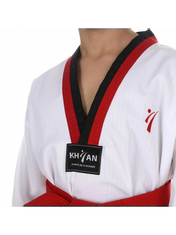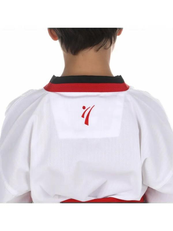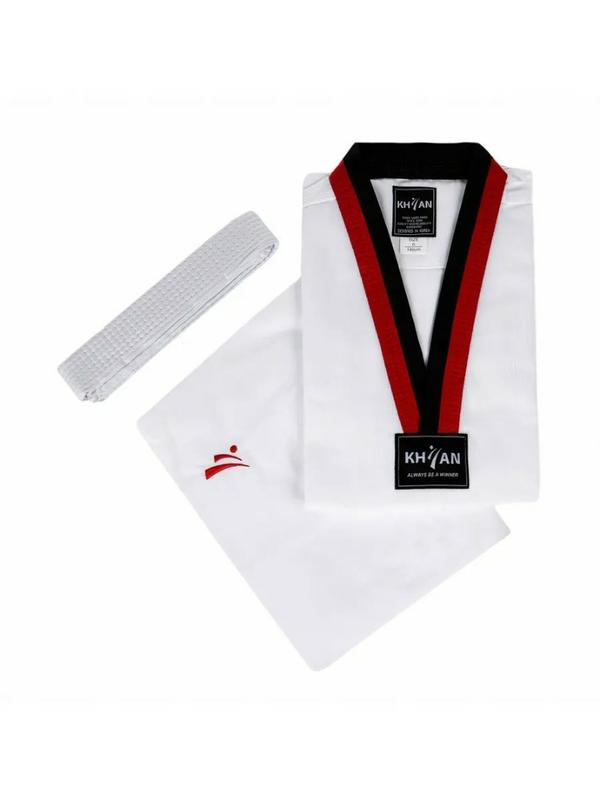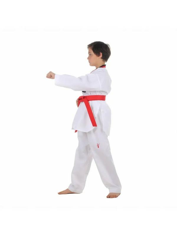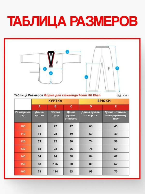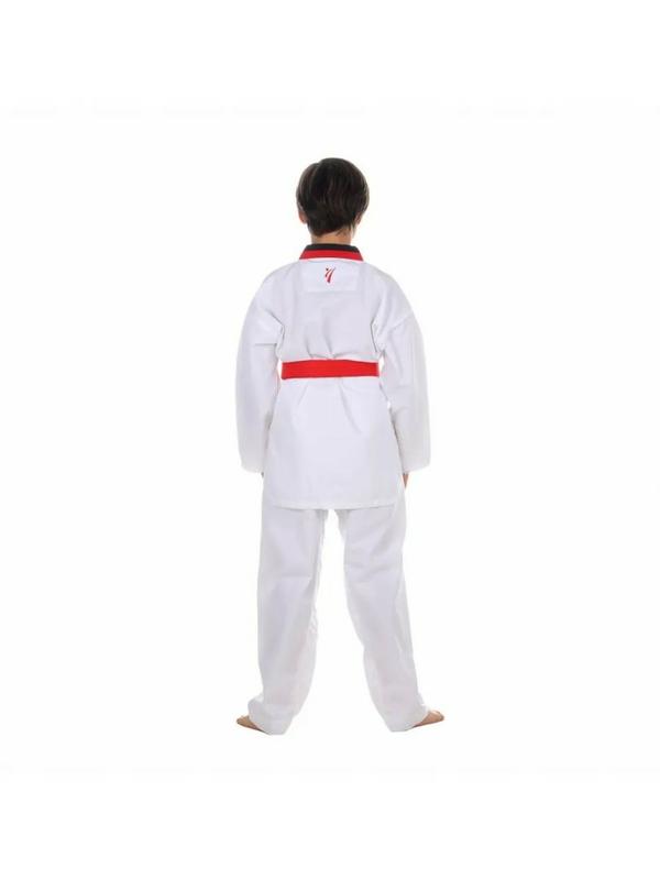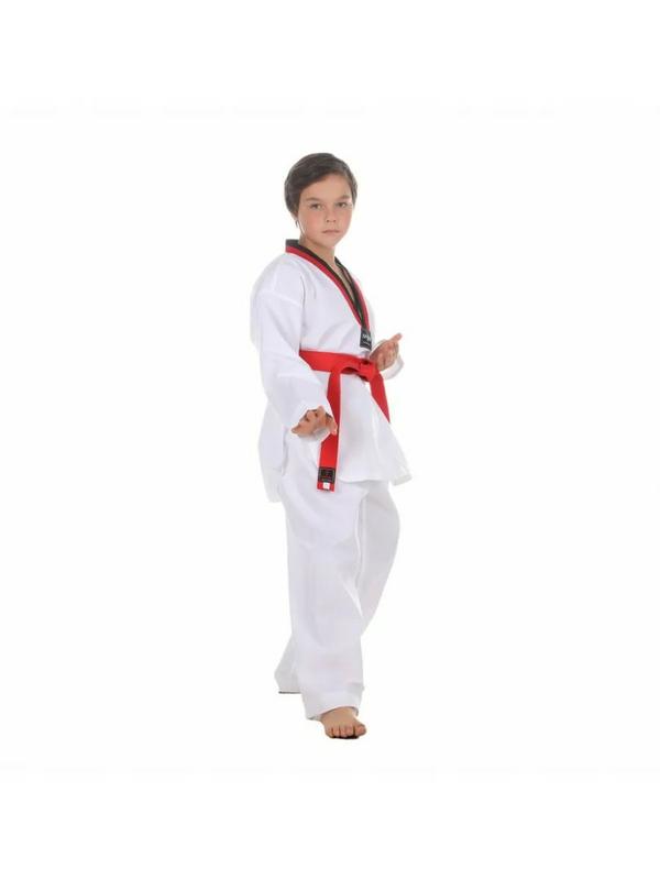 Форма для тхэквондо Poom Hit Khan — идеальный выбор для юных спортсменов! Обеспечьте своему ребенку комфорт и свободу движений во время занятий тхэквондо с формой Poom Hit Khan! Эта форма разработана с учетом всех потребностей молодых тхэнвондистов до 16 лет и станет незаменимым элементом их тренировочного процесса. Преимущества формы Poom Hit Khan: - Комфорт и свобода движений: Изготовленная из 80% полиэстера и 20% хлопка, форма обеспечивает отличную воздухопроницаемость и мягкость, позволяя Вашему ребенку сосредоточиться на тренировках и развивать свои навыки без ограничений. - Высокая износостойкость: Уникальное плетение ткани гарантирует степень долговечности формы даже при использовании в самых интенсивных тренировках. Вы можете быть уверены, что она прослужит долго! - Оптимальная посадка: Брюки свободного покроя оснащены широкой резинкой и шнурком для надежной фиксации, что обеспечивает комфорт во время выполнения различных техник и движений - Комплект с курткой и поясом.