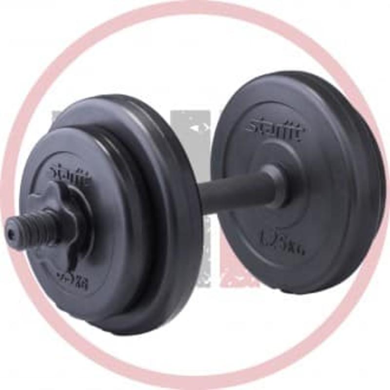 1. Разборная гантель прекрасно подойдет для тех, кто решил, занимается спортом дома. Предназначена для выполнения физических упражнений с отягощениями, которые направлены на развитие мышц, а также на укрепление суставов и общей работоспособности организма. Разборная гантель - один из самых удобных снарядов для занятий, так как при необходимости вес можно менять согласно требуемой нагрузке. Разборная гантель StarFit DB-701 состоит из пластикового грифа и дисков разного веса. Комфортно держать в руке. Благодаря нескользящей поверхности грифа на месте хвата, повышается безопасность во время тренировок. За счет широкого шага резьбы можно быстро и легко поменять вес. В комплекте прилагаются пластиковые замки, которые надежно фиксируют диски на месте.