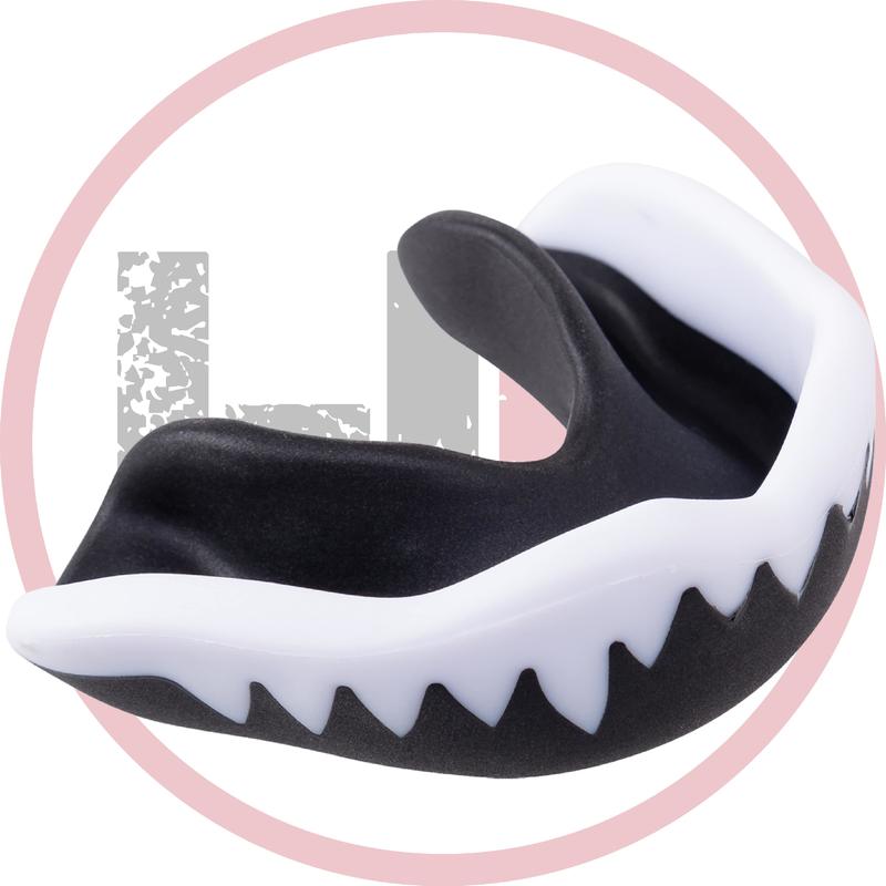 - Специальная форма для защиты верхних и нижних зубов разработана для снижения вероятности сотрясения и травм челюсти