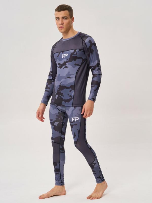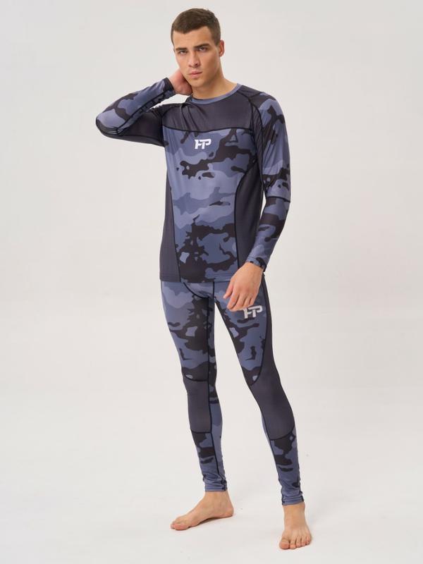 • Камуфляжный дизайн в серо-черных оттенках для тренировок и casual-стиля.