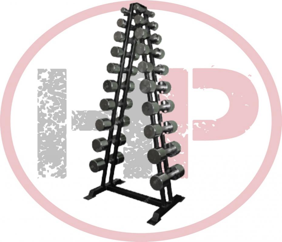 Гантельный ряд состоит из семи пар хромированных гантелей, и Л-образного стеллажа.