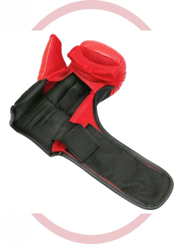 Конструкция с открытыми фалангами пальцев позволяет свободно выполнять захваты, броски и блоки, сохраняя тактильную чувствительность и контроль. Ударная зона оснащена эластичной подушечкой толщиной 4–5 см, которая эффективно амортизирует удары и защищает кисть. Дополнительная подушечка 2–3 см надёжно фиксирует и защищает большой палец — важную зону при работе с грушей и в спаррингах.