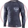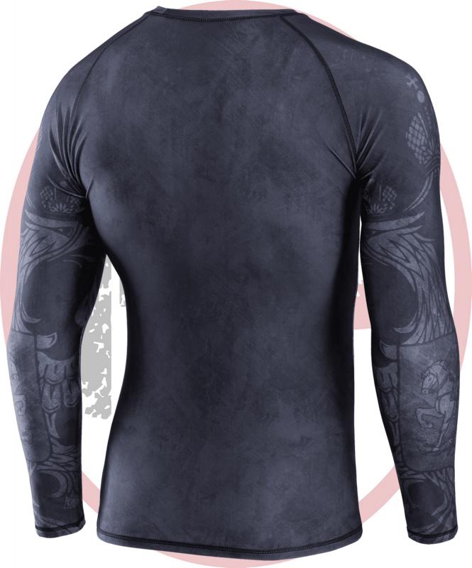 Комфортная модель рашгарда для занятий ММА и другими видами единоборств. Плотно обтягивает тело. Легкая ткань не ощущается на теле, удерживает тепло, отводит пот и защищает спортсмена от загрязнений при падении на мат. Специальные плоские швы не раздражают кожу спортсмена. Рисунок сублимирован в ткань, что гарантирует его сохранность после стирки.
