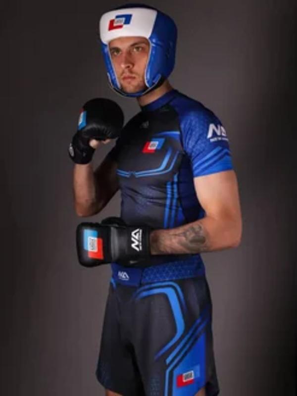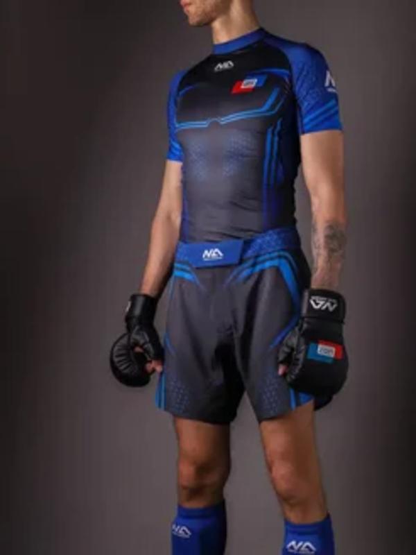 Рашгард СОЮЗ ММА России от New Armor — это профессиональная экипировка, разработанная для спортсменов, выступающих на соревнованиях и проходящих интенсивные тренировки. Бренд New Armor является официальным представителем и поставщиком Федерации Союз ММА России, что гарантирует полное соответствие рашгарда регламенту соревнований и высоким стандартам качества. Модель выполнена из гладкого, эластичного материала с добавлением лайкры, обеспечивающего плотную посадку, отличную растяжимость и максимальную свободу движений. Ткань комфортно прилегает к телу, не сковывает при выполнении ударов, бросков или борьбы, а также устойчива к износу и сохраняет форму даже после множества стирок и нагрузок. Дизайн рашгарда выполнен в тематической стилистике единоборств. На передней части и по всей поверхности нанесены яркие принты, включая официальный логотип «СОЮЗ ММА России», подчёркивающий принадлежность к официальному спорту и добавляющий патриотический акцент. На спине расположен крупный графический узор с символикой MMA, делающий образ бойца выразительным и узнаваемым. Конструкция с короткими рукавами и эргономичным кроем плотно облегает тело, не сползает и не перекручивается в процессе активных движений. Поверхность ткани имеет лёгкий блеск и фактуру «рубчик», придающую изделию современный, технологичный вид и визуально выделяющую его среди стандартной спортивной формы. Рашгард подходит для тренировок по ММА, джиу-джитсу, самбо и другим активным дисциплинам. Прочный материал и продуманный крой обеспечивают долговечность и комфорт, а универсальная посадка делает модель подходящей как для любителей, так и для профессионалов. Это не просто форма — это символ принадлежности к сильной спортивной команде и признание высокого уровня мастерства