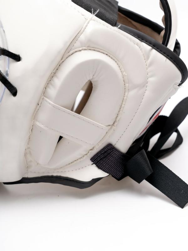Полусферическая ударопрочная маска крепится к шлему шнуром из натуральной кожи. Регулировка размера шлема осуществляется шнуровкой или широкой застежкой Velcro (в зависимости от артикула) в затылочной части.