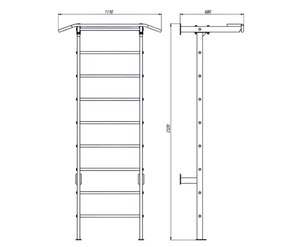 Шведская стенка неразборная с турником облегченная ProfiGym-ТК-0011-J