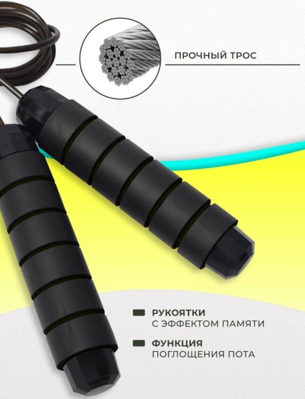 Скакалка HARD-PRO с подшипником, металлический трос, мягкие ручки