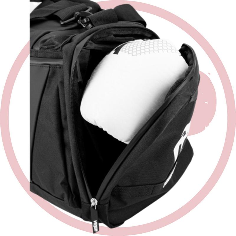 Эта уникальная модель сумки имеет специальное вентилируемое отделение для хранения грязной одежды, а также карманы разных размеров на боковых, центральных и верхних секциях для удобного хранения различных предметов. Благодаря регулируемым ремням вы можете носить эту сумку на руке, на спине или даже через плечо. Верхние участки выполнены из дышащей сетки, что способствует хорошей вентиляции вашего снаряжения после тренировки. Отделка этой сумки, как и у всех других моделей Venum, выполнена с большим вниманием к деталям. Этот продукт гарантирует долговечность и будет сопровождать вас на протяжении многих лет использования.