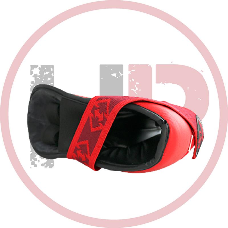 Защита стопы — ITF Expert KHAN - это защита, предназначенная для спортсменов по Тхэквондо Версии ИТФ. Это качественные и прочные футы для тренировок и соревнований. Крой предусматривает закрытые пятки и пальцы, а также полное отсутствие подошв. Вместо них имеются по 2 резинки: для пятки и пальцев. Внешний материал футов отлично держит продолжительную эксплуатацию и не теряет привлекательного внешнего вида. Внутренний наполнитель – пенополиуретан. Он отлично поглощает удары и эффективно смягчает их. Защита крепится к стопе длинной эластичной резинкой с застёжкой на липучке.