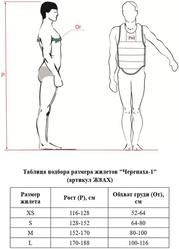 Жилет ЧЕРЕПАХА-1 предназначен для защиты спортсменов на тренировках и соревнованиях по различным видам единоборств. Жилет эффективно защищает корпус спортсмена спереди (дополнительно низ живота и ключицы), по бокам и сзади (позвоночник по всей длине). Конструкция обеспечивает достаточную гибкость жилета, что позволяет использовать как ударную, так и бросковую технику, а также бороться в партере. В жилетах серии ЧЕРЕПАХА реализована схема расположения защитных элементов, исключающая наличие уязвимых точек. Материал внешних поверхностей - легкий прочный капрон с влагооттакивающей пропиткой. Защитный вкладыш представляет собой сложное сочетание элементов из вспененных полимерных материалов, имеющих высокие показатели поглощения энергии удара. Толщина 8 мм