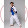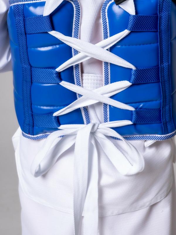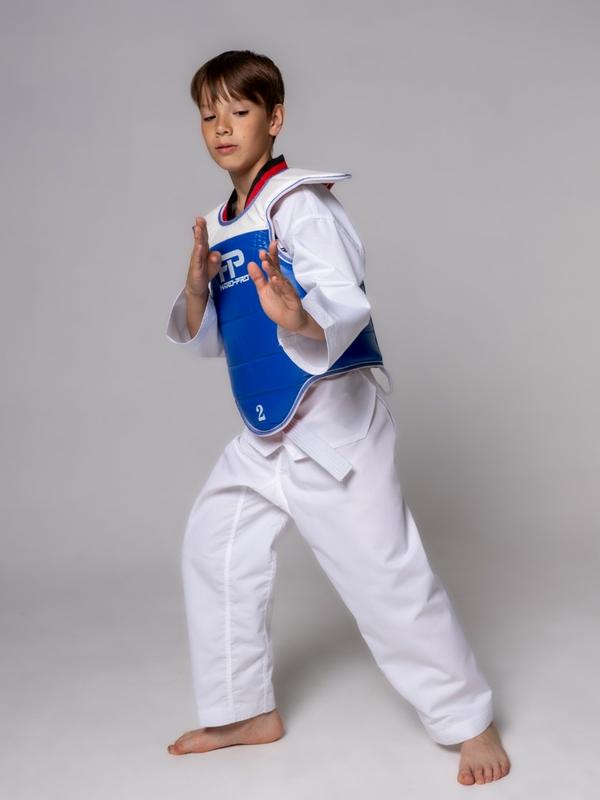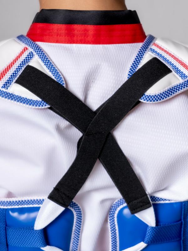 Жилет для тхэквондо WTF HARD-PRO — это надежный защитный протектор, разработанный для обеспечения максимальной безопасности спортсмена во время тренировок и соревнований. Данный защитный элемент предназначен для защиты корпуса и тела, что особенно важно в динамичных и контактных видах спорта, таких как тхэквондо. Жилет выполнен в двухстороннем дизайне, что позволяет использовать его с обеих сторон, обеспечивая универсальность и практичность. Одна сторона жилета окрашена в синий цвет, другая — в красный, что соответствует стандартам соревнований по тхэквондо и позволяет легко адаптироваться к различным условиям и требованиям турниров. Конструкция жилета включает в себя двойной слой защитного материала, который эффективно поглощает удары и снижает риск получения травм. Это делает его идеальным выбором для спортсменов, стремящихся к максимальной защите и комфорту. Протектор плотно прилегает к телу, не ограничивая движений, что позволяет сохранять высокую маневренность и скорость во время поединков. Жилет соответствует стандартам WTF, что подтверждает его высокое качество и соответствие международным требованиям безопасности. Использование современных материалов и технологий производства обеспечивает долговечность и износостойкость изделия, что особенно важно для интенсивных тренировок и частого использования. Этот защитный жилет для тхэквондо — незаменимый элемент экипировки для каждого спортсмена, стремящегося к достижению высоких результатов и сохранению здоровья. Он обеспечивает надежную защиту корпуса и тела, позволяя сосредоточиться на технике и стратегии боя. Выбирая данный протектор, вы получаете уверенность в своей безопасности и комфорте на протяжении всего тренировочного процесса